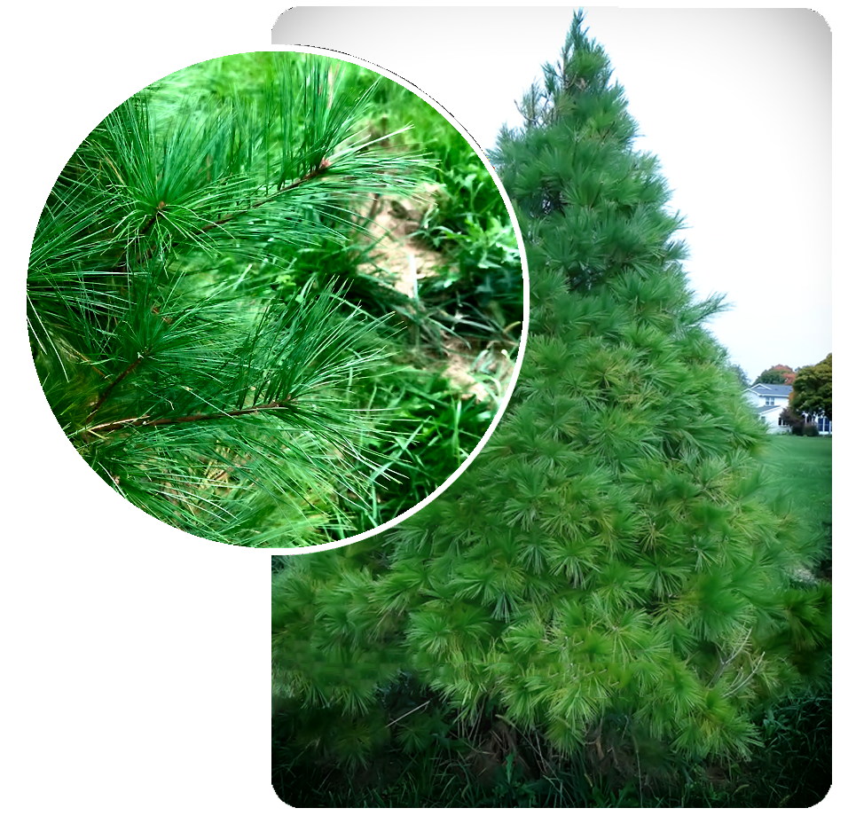 Long soft needles, 2” to 4” long, light green to bright green in color. Soft branches do not hold heavy ornaments well.